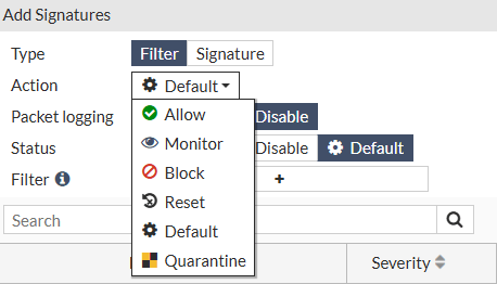 Default : Fortigate veritabanındaki signature ile aksiyon al.